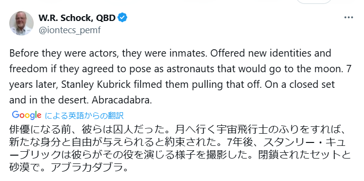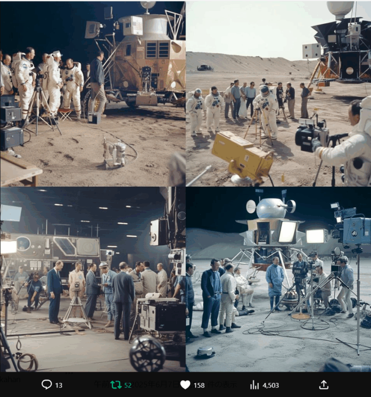最初この映像を見ても分からなかったけど、なるほど・・宇宙飛行士が実は俳優だったのですね。世界中の人たちを騙し、最高の演技者でした。