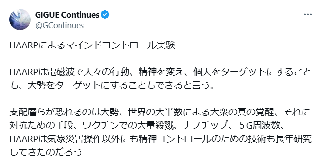 やはりHAARPとは気象災害操作以外にも人々をコントロールするための目的、おそらくはワクチンと5G周波数も関連させた集団催眠的な実験もやっているんだろう。