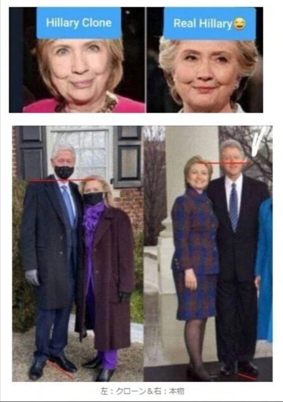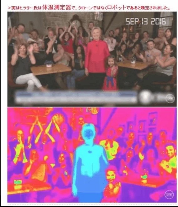 数年前のヒラリーさんは、体温測定機により、クローンではなく「バイオロボ」であることが断定されています。 本物のヒラリーさんは、既に4年前に粛清されています。