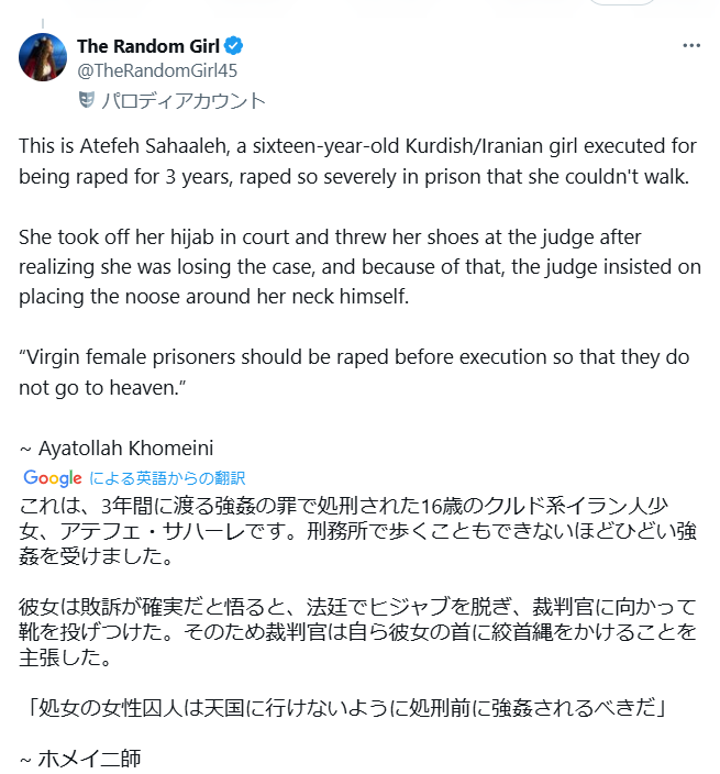 複数の情報をアップしているので少しまとまりがありませんが、世界中で女性がこんなにもひどい扱いを受けているのは何故なのでしょうか?何の教えなのでしょうか。私には分かりません。