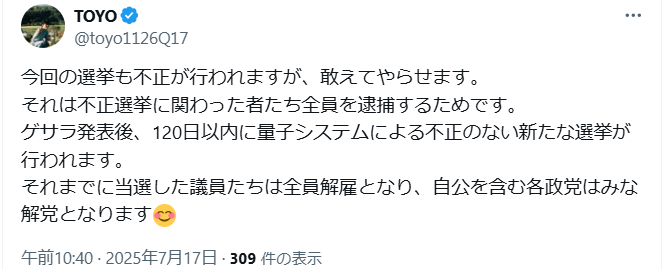 — 中高年保守党 (@ys8823488993796) July 16, 2025