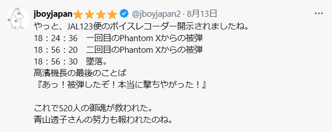 何度も取り上げていますが、しつこく追及していきます。衝撃的な言葉が明らかになりました。40年間封印されてきたボイスレコーダー。機長、副機長の必死な状況が伝わりもう涙が止まりませんね。真実を明らかにしないとダメです。