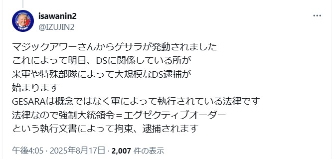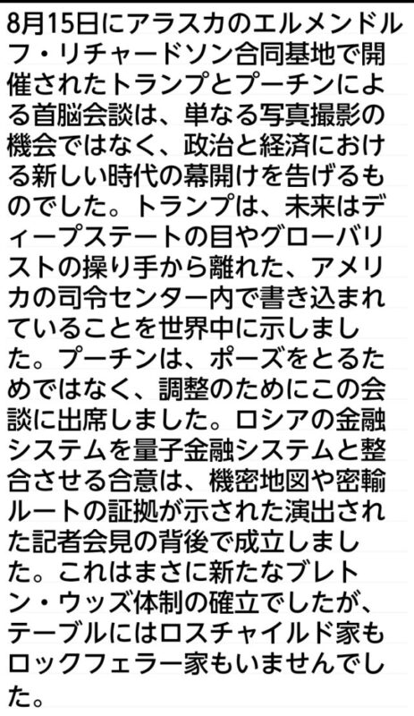 Boom!GESARA は、トランプとプーチンによって米軍の施設内で発動されました。… pic.twitter.com/90zk8FMfXT— komakoma2 (@komakom36885352) August 16, 2025