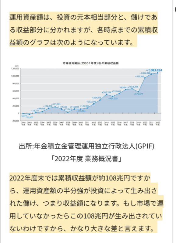 まず衝撃の事実から年金の運用を担当する「GPIF」(年金積立金管理運用独立行政法人)は、 なんと2025年現在で 260兆円以上 を運用し、過去5年連続で黒字累計 約98兆円 の利益を出してるんです。