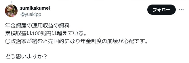 一部の政治家だけが「年金運用で儲けてます♪」状態