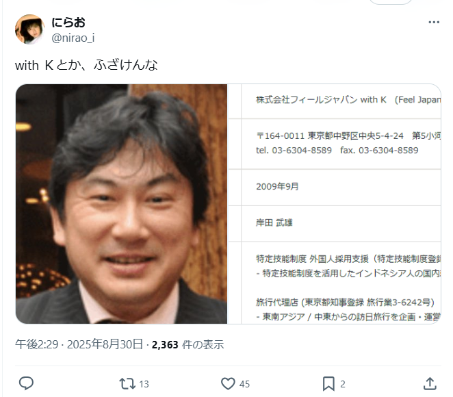各都市がそれぞれ一カ国の移民しか受け入れないのはおかしいだろ、アフリカ4カ国民の自由は無いのか?w」という感じの会話だったが、それを聞いて、岸田の弟の会社「フィールジャパン」がベトナム人の特定技能制度の派遣を牛耳っているように、各国毎に政治家、官僚、財界の『利権』が固定しているのだろうなと理解した。。