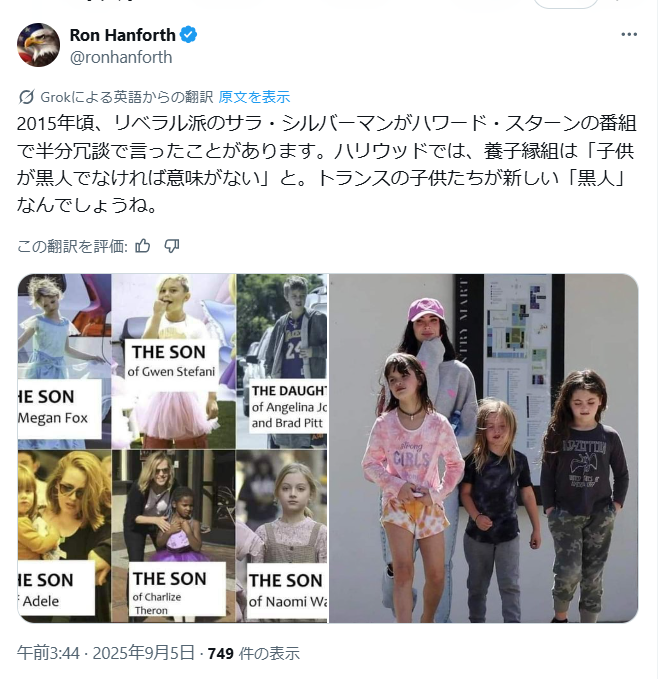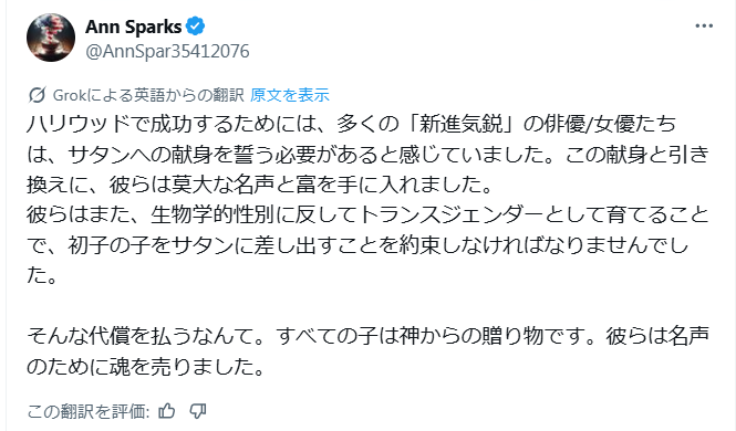 信じられないくらいアメリカや世界中でトランスの子どもがいるのにはびっくりしました。ハリウッドは勿論 ほぼトランスです。とにかく悪魔に魂を売ったんです。