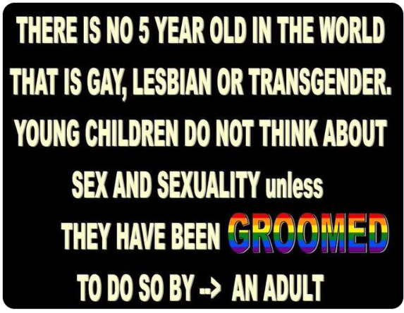 この世に5歳児でゲイ、レズビアン、トランスジェンダーの子供はいません。幼い子供は、大人に教え込まれない限り、セックスやセクシュアリティについて考えることはありません。