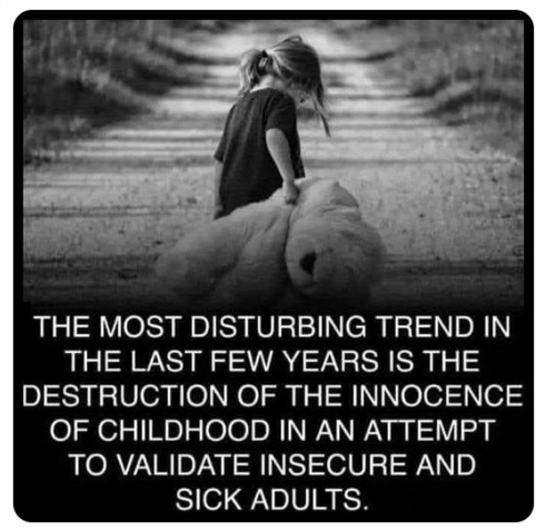 ここ数年の最も憂慮すべき傾向は、不安で病んだ大人を正当化するために、子供の無邪気さを破壊しようとすることである。