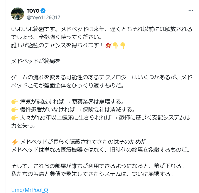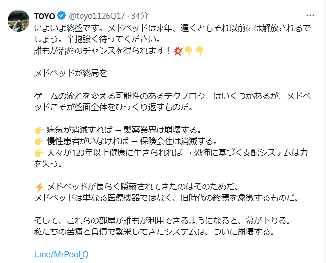 9/9更新 生きています。帰ってきます。いよいよですね 日本時間 世界・日本の真実 2025.09.062025.09.09 いよいよ 何度いったかな・・・でもいよいよですね。 I'll be back soon. Until then, enjoy the show. pic.twitter.com/BPxrgSZqJ5— Christopher D'Olier Reeve (@RealDolierReeve) September 6, 2025 すぐ戻ります。それまでは、ショーを楽しください Freddie Mercury is alive, is not dead. Tomorrow, Saturday, September 6, 2025, he will return. pic.twitter.com/qorsHprAJD— Florentin Patriota Q (@Florenpatriotaq) September 6, 2025 A shout out to the unvaccinated who stood their ground during the largest psyop against humanity. 5 and half years later and we are still the healthiest people in this planetarium! 🤗😘❤️ 💥💥💥WWG1WGA💥💥💥 pic.twitter.com/tUc82WjP9w— Pastor Bob Joyce (@Pastor_Bob_Joyc) September 5, 2025 ワクチン未接種の人々へ、史上最大の心理作戦に立ち向かったあなたたちに敬意を表します。5年半が経過し、私たちは今なおこのプラネタリウムで最も健康な人々です!