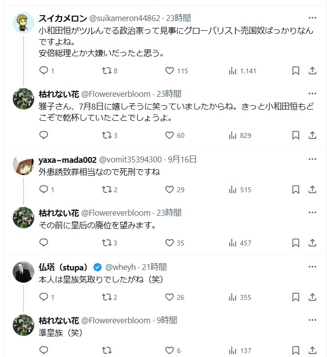 ついにグローバリストとしての本性を現した小和田恒氏。ありとあらゆる方法で日本を貶め尽くし、今もアフリカでの植民地主義に日本も加担したかのような事実と異なる誤情報を流布している。 彼を証人喚問する事は可能なのでは? 小和田氏は皇后の父ではあるが皇族ではない。可能な筈です。