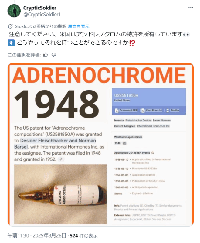 アドレノクロムはヘロインの10倍強力だ