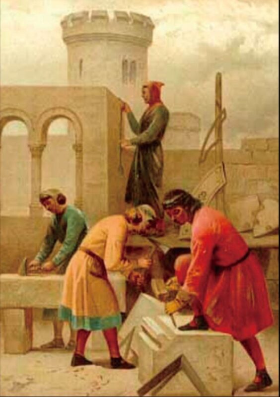彼はソロモンの神殿を建設する役目を任され、自分の配下の石工職人たちを「徒弟」「職人」「親方」の三つの階級に分けたの