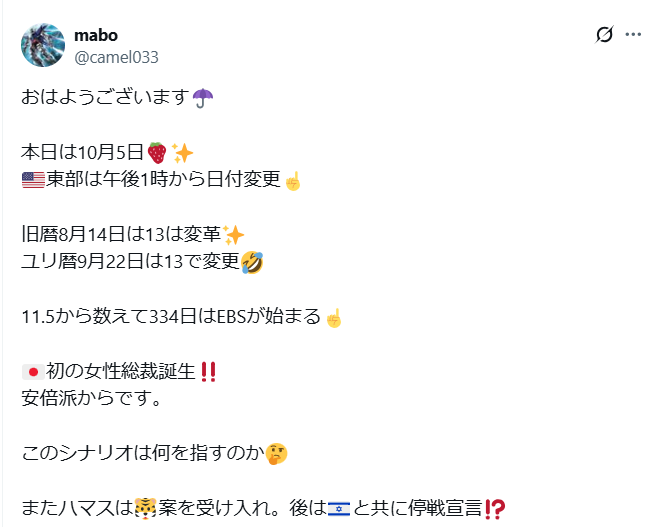 シナリオの読み解きは苦手です。難しい・・どうなるんでしょうか?政党は無くなると思っているので、GESARA発表後120日以内に選挙でしたよね。今からだったら2026年1月1日に完遂できますね。これからメディアは高市さんを思いっきり叩きますよ!と言う人もいるし、SNS上でも賛否両論ありますね。色々な意見を拾ってみました。