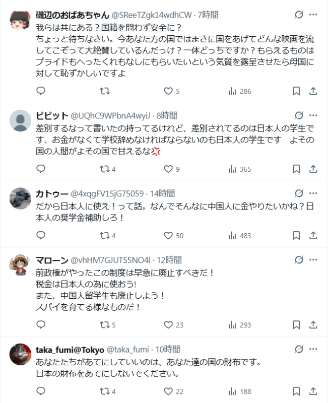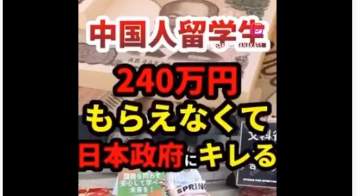 中国人留学生 年間240万円貰えなくて日本政府にキレる! ヤッター!
