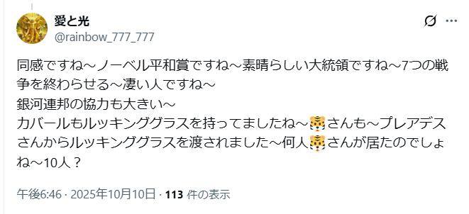 トランプ大統領、皆さんの最高の感謝と平和な気持ちが伝わります