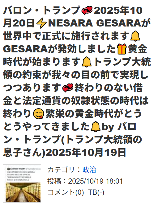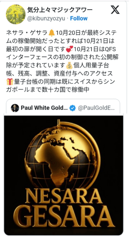 2025年10月20日 NESARA GESARAが世界中で正式に施行されます バロン・トランプが言ってるけど・・・信じましょう