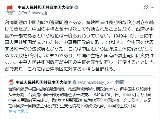 台湾人の多くは日本統治時代を「インフラの恩恵」とポジティブに捉え、戦後の国民党統治を「抑圧的」と見なす傾向があります。一方、中国本土(PRC)では台湾を「不可分の一部」と主張し、日台接近を警戒しています。