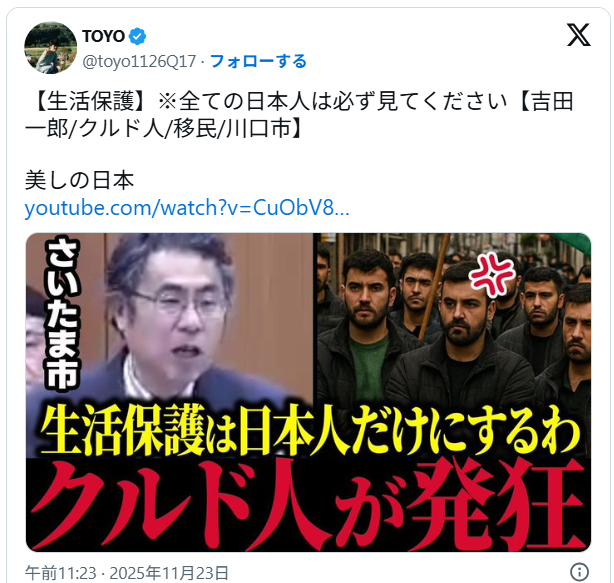 片山さつき大臣 断固として中国人を追い出す試案。 他の国の土地取得不可能な国は、我が国も、取得不可能とすべきです。 世界・日本の真実 2025.11.23 他にも皆さんバンバン発表しています。頼もしい限りですね。 片山さつき大臣 断固として中国人を追い出す試案。他の国の土地取得不可能な国は、我が国も、取得不可能とすべきです。【片山さつき財務大臣、中国人の土地取得問題 日本のルール・マナー”当たり前”がそもそも違う】#片山さつき引用元:zezehehex pic.twitter.com/xNfZfGQv1O— 358ちゃん (@max358japan) November 23, 2025