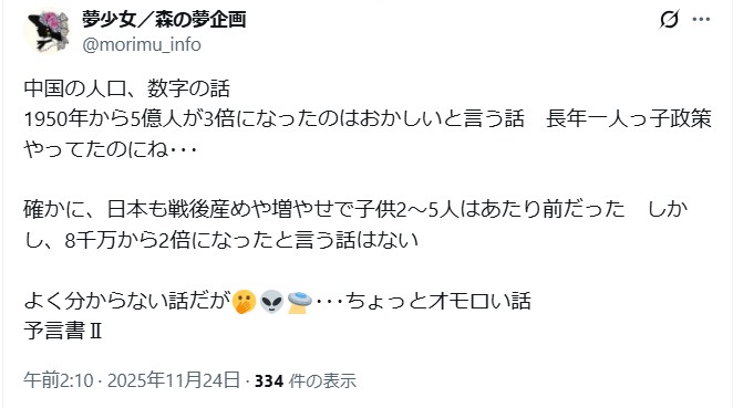 中国は「1950年代以降 人口が3倍になった」と主張していますが それは不可能です。