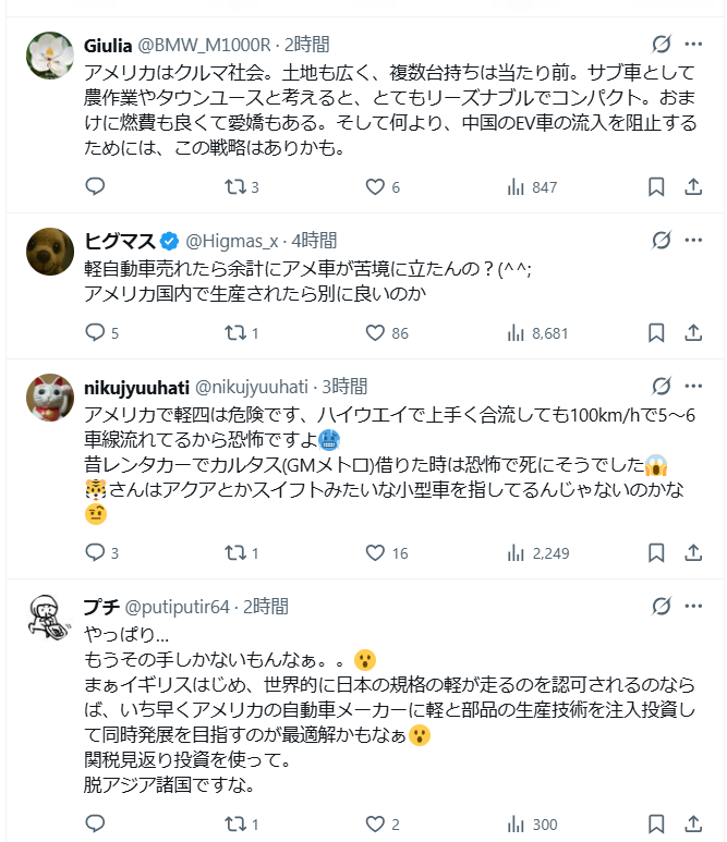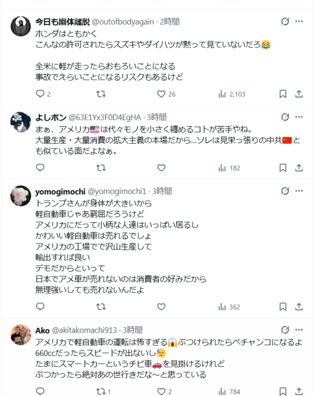 トランプ政権はニューヨークの移民裁判官8人を解任しました。 ★トランプがホンダに軽自動車の米国での生産を承認 ★これは素晴らしい動きです! 世界・日本の真実 2025.12.04 すごいですね。トヨタもホンダもお掃除が済んだのですね。浄化が済んでこれからの世の中が楽しみです。 え?トランプがホンダに軽自動車の米国での生産を承認か?『日本などにはビートルのような小さな車がある。それらはとても小さく、本当に可愛いです。でも製造は許可されていない。私は秘書に、それらの車の生産を直ちに承認するよう指示した。』これって軽自動車の事だよな? pic.twitter.com/jd9UsXrAfq— 髙安カミユ(ミジンコまさ) (@martytaka777) December 4, 2025 【速報】すごい展開ですトランプ政権はニューヨークの移民裁判官8人を解任しましたトランプ大統領は不法移民の迅速な強制送還に対応できる担当者を登用しようとしていますこれは素晴らしい動きです体制を一掃せよ pic.twitter.com/fhty8JnfXU— スカーレット (@yukariATL) December 4, 2025