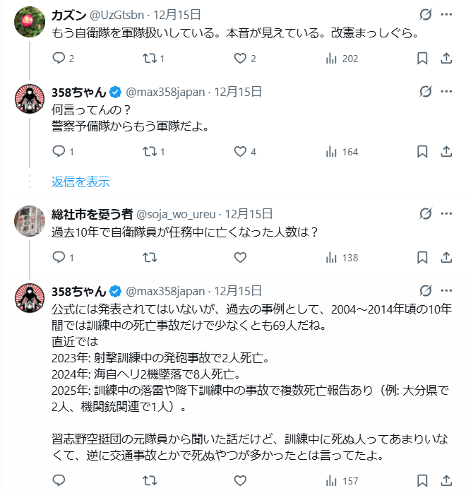 【高市総理】 外国人の医療費踏み倒し問題にメス ★自衛隊の覚悟 世界・日本の真実 2025.12.16 政府のトップが変わるだけでこんなにも変わるんだ!どんどんやって欲しいですね。 【高市総理】外国人の医療費踏み倒し問題にメス pic.twitter.com/jxyylEhOrW— John Smith (@smith_john87277) December 15, 2025 身を犠牲にして活動している自衛官はもっと金銭面でも優遇されていいよな!立憲民主党とかクソくだらない議員の給料減らして、自衛隊とか国のために働いてくれている人材にお金渡した方がよっぽどいい!【熱弁】自衛官の待遇改善に並々ならぬ熱意を表明する小泉防衛大臣😭taiketsu-yori-kaiketsu pic.twitter.com/INLPkTr42x— 358ちゃん (@max358japan) December 14, 2025 このポストを直接Xで見て下さい。コメントから色々な情報が入ります。 彼らの制服は死に装束だってこと。命をこれに纏っているんだ。「これは死に装束です」財務省を黙らせた自衛隊の一言 #自衛隊Surprising_Japan_World pic.twitter.com/vISWfcbcqC— 358ちゃん (@max358japan) December 15, 2025