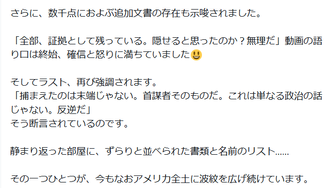 さらに、数千点におよぶ追加文書の存在も示唆されました。