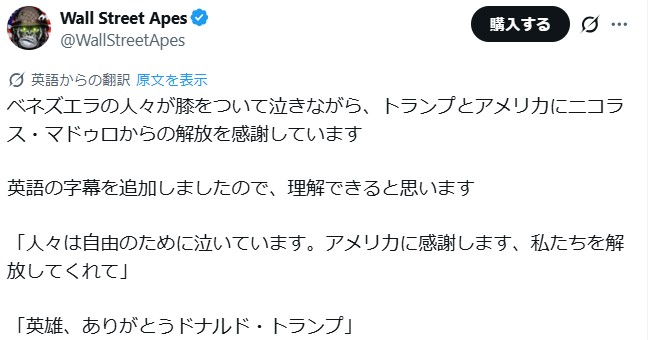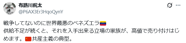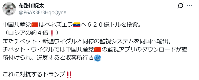 やりました!ベネズエラ大統領マドゥロ 拘束 ベネズエラは国をとりもどしましまた。 世界・日本の真実 2026.01.04 中国共産党に乗っ取られていたようなベネズエラ、ここ数十年国民は辛い時期を過ごしました。麻薬生産国のように成り下がっていた。全てマドゥロ政権下でのことだった。 アルゼンチンのミレイ大統領は、ベネズエラ攻撃に関し米国支持を明白に宣言。彼は言った。『アルゼンチンは、ベネズエラ国民を解放するための米国とドナルド・トランプ大統領の圧力に賛同する。この問題に対する控えめな対応の時期は終わった。』日本も、かくあるべし。 pic.twitter.com/72RDusCxrt— 髙安カミユ(ミジンコまさ) (@martytaka777) January 3, 2026 ベネズエラ🇻🇪の惨状!それでもこの状況を伝えない日本🇯🇵メディア。安田純平を持ち上げ、「現場で何が起きているのか正確に伝えるのが報道の基本」とか言ってた、NHK、朝日、毎日、沖縄2紙等、おパヨの元記者、人権派を自称する面々は、今回、詳細を伝えないのはなぜ❓🧐 pic.twitter.com/bCN2Gl6TJy— 布路川梶太 (@P6AX3Er3HqoQynY) May 3, 2019 5月4日ベネズエラ🇻🇪マドゥロ大統領(中国共産党🇨🇳支援)官邸の近くで、野党党首グアイド(米国🇺🇸支援)の支持者が、民主的かつ平和な方法で集まった。マドゥロの国家警備隊は武装して防備に立つ。依然、日本🇯🇵メディアはクーデター失敗と米の内政干渉を批判するのみ。🤮 pic.twitter.com/kx5Gz2QFY2— 布路川梶太 (@P6AX3Er3HqoQynY) May 5, 2019 害虫・日本メディアの戦略成功🤮米国他50カ国以上が野党代表グアイドを支持。→黄中国、ロシア、イラン等はマドゥロを支持。→緑日本🇯🇵政府はグアイド支持だが、NHK等日本メディアがグアイド批判一色なので、海外では日本政府の立場が理解されず中立扱いをされている。😰pic.twitter.com/Uq8AqczUPj— 布路川梶太 (@P6AX3Er3HqoQynY) May 14, 2019 麻薬王マドゥロ大統領が米軍特殊部隊に拘束されて以降、ベネズエラ上空に飛行機が飛んでません。中国の訪問団はベネズエラから飛行機で脱出できなくなりました。pic.twitter.com/aPBXkFlaD2— 布路川梶太 (@P6AX3Er3HqoQynY) January 3, 2026 Trump won. pic.twitter.com/yEpeQi5kIf— I Love America News (@ILA_NewsX) January 3, 2026 米国在住のベネズエラ人も歓喜『私は家でひざまずいて泣きました。これは奇跡です!』『私の姉は政治的な理由で亡くなった。そして抗議活動の時、私は移住しなければならなくなった。私たちから兄弟、息子、叔父を奪った彼らに、正義が果たされていると思うと幸せです。』pic.twitter.com/ZxHxdWBWeo— 髙安カミユ(ミジンコまさ) (@martytaka777) January 3, 2026 良かったですね。ウィグルのようにならなくて。ベネズエラの人たちは国を取り戻したんです。