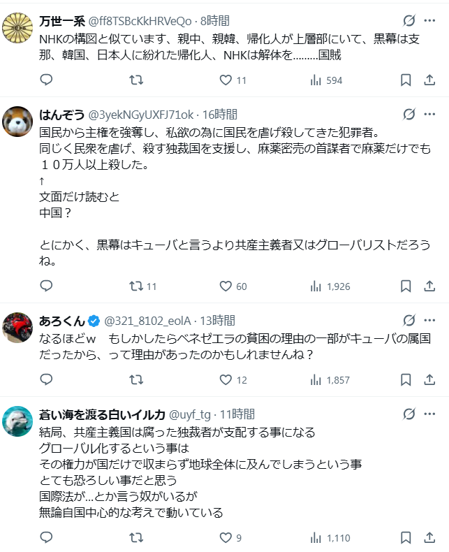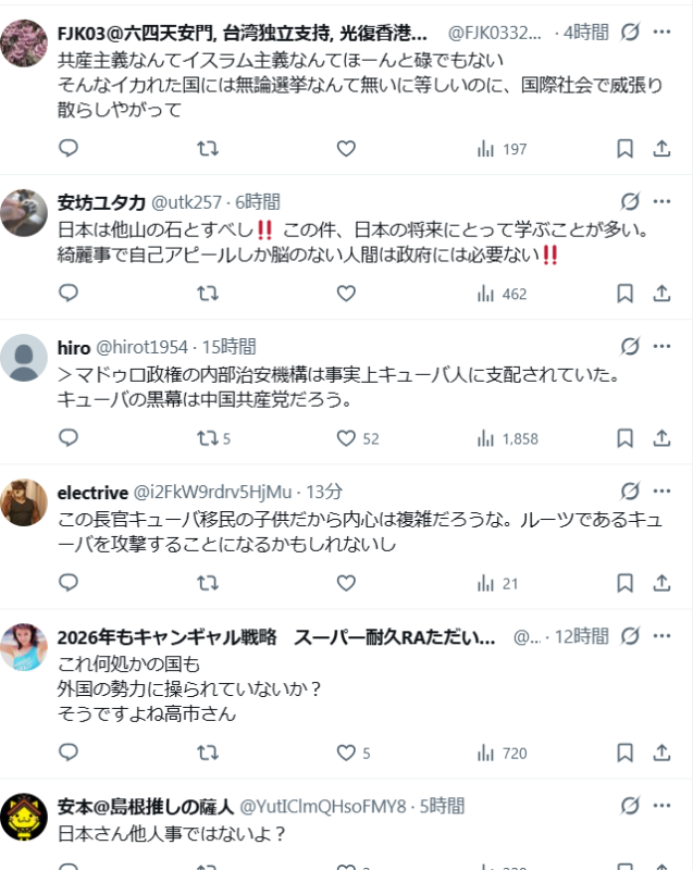 警護、内部諜報、監視――すべてキューバ人の管理下。 マドゥロは自国民ではなく、キューバ人に守られていた。 これはもはや同盟ではなく、政権内部の「植民地化」だった。そしてキューバの黒幕は中国共産党だった。