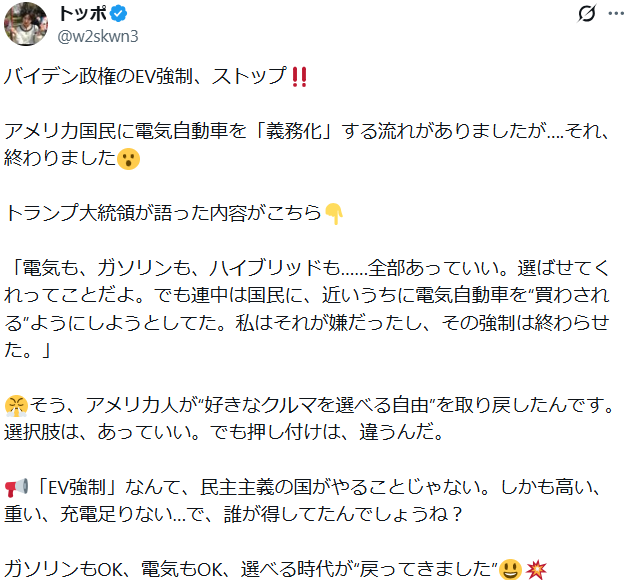 本当に必要な人にお金が流れなくて、移民たちにとんでもないお金が流れていた。DOGEのお蔭で無駄なお金を節約でき、本来必要な所へお金を回すことが出来るんです。