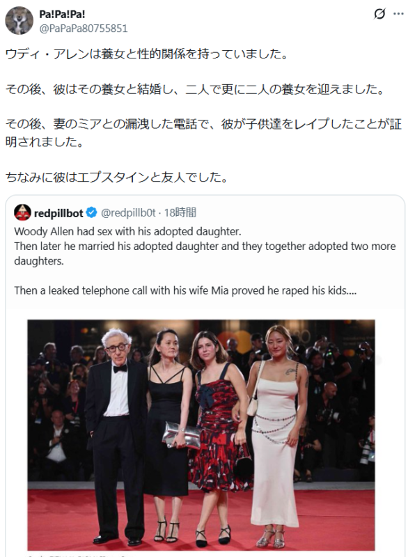 更新 (閲覧注意)「SRA被害者たちの証言」 ペドフィリア インドネシア 子どもへの性犯罪、死刑と「去勢刑」認める ウッディ・アレン養女と性的関係を認める 日本皇室も出てきました 世界・日本の真実 2026.02.07 過去動画ですが、再びアップします。後からもどんどん足していきます。いよいよ天皇が出てきました。 「SRA被害者たちの証言」(閲覧注意)https://t.co/k2yggkwjKw— Mabo K (@mabo_k_) February 7, 2026 ↓rumble.comで再生します。 Just a moment...