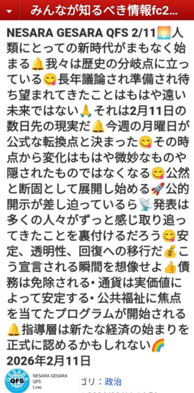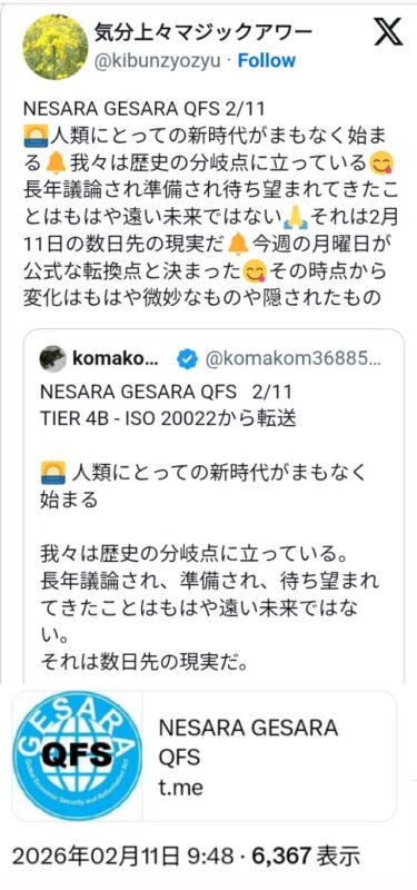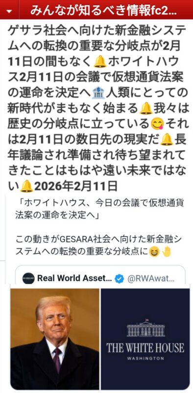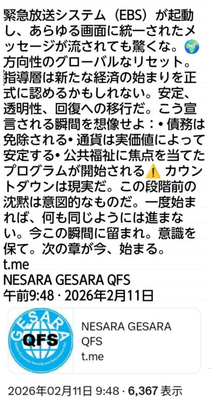 ゲサラ社会へ向けた新金融システムへの転換の重要な分岐点が2月11日の間もなく