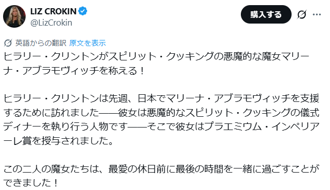 マリーナ・アブラモヴィッチ なぜウクライナで「子供を守る」役に任命されたのですか? スピリット・クッキング 世界・日本の真実 2026.02.16 彼女の創作するものは全てグロテスクなものや子ども達を虐待しているようなものばかりですね。もう気持ち悪いのと可哀相なので扱えなかったけど、やっぱり皆に知らせるべきだと思うようになりました。 マリーナ、あなたの姿が見えています。なぜウクライナで「子供を守る」役に任命されたのですか?マリーナ・アブラモヴィッチは、スピリット・クッキングを行う、サドマゾヒスティックな魔女で、超自然的な力の召喚に雇われています。彼女はロスチャイルド家と都合よく密接なつながりを持っています。 pic.twitter.com/4fzgreTF9r— トッポ (@w2skwn3) February 16, 2026