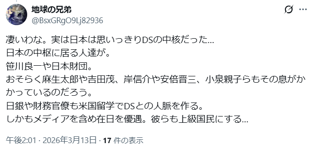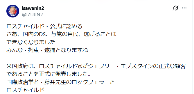 どこかで繋がっているようです。今はエプスタインファイルが注目されています。さて高市早苗さんは全く知らぬ存ぜぬを貫いていますが、どうなるのでしょうか