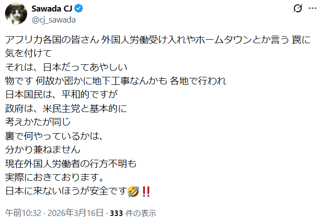 ★日本政府 エプスタインファイルを無視 ★帰化人:不正であれば剥奪決定 世界・日本の真実 2026.03.16 税金、社会保険を払ってないと剥奪!国家安全法の法律は施行決定! しかし日本政府はエプスタイン関連ファイルは日本とは無関係だと主張 複数の政府高官の名前が言及されているのにもかかわらず、捜査を完全に停止する 。今操作してしまうと一気に天皇まで行っちゃうから順番があるのかな? 🔥帰化人:不正であれば剥奪決定🔥高市さん やりました‼️税金、社会保険を払ってないと剥奪⚡️国家安全法の法律は施行決定⚡️中国人や韓国人が不法な方法で日本の土地や島を買っていると没収して全て国有化すると小野田さんが言ってます⚡️今まで日本の政治家いたか⁉️ず~と、左翼総理だった😈 pic.twitter.com/x2NZQfIhoc— Trump 17Q (@NIKONIKOteam17) March 16, 2026 🚨🇯🇵SHOCKINGJAPAN government claims Epstein files don't concern JapanThey will completely halt investigations despite multiple government officials names being mentionedPEDO PROTECTORS RULE JAPAN pic.twitter.com/kL2GpJ0MKy— Kumashun🇯🇵🐻💎 (@isfjcutebear) March 16, 2026 移民とか言ってどさくさ紛れ闇から闇へ 女性 子供を売り物にしてきた 米民主党の悪事日本の外国人労働者の行方不明もあやしいぞ 本当に自ら居なく成っているのだろうか明後日みたい顔してエプスタイン❓️とか言っているけど 裏で人身売買 臓器売買やってないか🤣‼️ pic.twitter.com/jnVfvMx5Ht— Sawada CJ (@cj_sawada) March 16, 2026