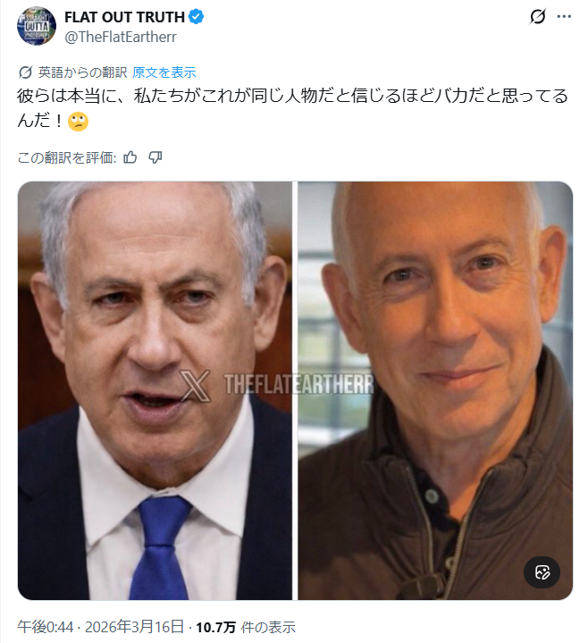 速報:トランプ大統領が世界に向けて安心を表明!勝利はすぐそこだ! ★小児性愛者狩りです。★オバマはポンコツだった ★本物のネタニアフはこんな顔でした。 世界・日本の真実 2026.03.16 もうすぐもうすぐと煽られて6年が過ぎました。待っている人は十数年待ったと言うでしょう。私も少々疲れ気味になっていますが、それでももう少し もう少しで変わるよ!と自分自身に言い聞かせております。 🚨 速報:トランプ大統領が世界に向けて安心を表明「事態が収束すれば、価格はたちまち暴落するだろう。そして、事態はあっという間に収束するだろう!」勝利はすぐそこだ!🇺🇸https://t.co/4XorPN81IB pic.twitter.com/6h1YR7af9z— TOYO (@toyo1126Q17) March 16, 2026 速報:🇺🇸 トランプ大統領は、ホルムズ海峡を通過する船舶を護衛するため、複数の国からなる連合を準備している。https://t.co/hHpR8OFwN5https://t.co/jxzA6AlKWc pic.twitter.com/yl1HSpYIq0— TOYO (@toyo1126Q17) March 16, 2026 🇺🇸Make hunting pedophiles great again.🇺🇸pic.twitter.com/0BAahcxSvK— John (@MagaGrunt1) March 14, 2026 ↑こんな風にして小児性愛者を逮捕しているのですね。これがデクラスでしょうか? 黒人初の大統領という事で持ち上げられていただけ、退任後は「黒人から大統領が選ばれることは二度と無いだろう。」とまで言われた。 実績としては自分より無能だからとバンギブン国連事務総長を続投させたり、密入国者や不法滞在者にアメリカ国籍を与えた等の碌でも無い事ばかり。… pic.twitter.com/FK67YxlOhj— 358ちゃん (@max358japan) March 15, 2026 🔺発動日:2026年3月17日(火)グリニッジ標準時12時(日本時間午前0時)、米宇宙軍はメドベッド配備作戦の全指揮権を引き継ぎます。続きは👉https://t.co/3c6qCYA6PL pic.twitter.com/GGoTJSaPio— Trump 17Q (@NIKONIKOteam17) March 16, 2026 イランと日本が友好国の理由 イランと日本が友好国となった大きな理由のひとつがこちら。「日本だけが助けに来てくれた」先人が紡いだこの絆の糸を高市早苗ごときに引きちぎられるわけにはいかないんだよ。 pic.twitter.com/KSCTVZ0eCN— 忘却ちゃん (@Kick_The_Rocket) March 16, 2026