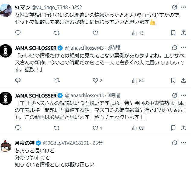 ★エリザベスさん イラン攻撃の真相を語る ★ガソリン便乗値上げ 日本政府の嘘 騙されるな! 世界・日本の真実 2026.03.19 久しぶりですね。分かりやすいですね。皆さんが色々動画をアップされていますので、今日も動画色々です。世界ではGESARAが進行中です。いつでも真実開示待っています。 エリザベスさんの新作はイラン攻撃に関する動画テレビからしか情報を得てない人は見て欲しい内容。pic.twitter.com/FzJFzXcFSY— ひで2022真実を追求 (@hide_Q_) March 18, 2026 🚨🆕トランプがFRBの閉鎖を仄めかす😏🗣️トランプ:「FRBの建物(の改築)は何十億ドルもかかるだろうが、もしかしたら二度と開かないかもしれない。なので、今は素晴らしい新FRB議長ケビンが就任するところだが、彼がこの施設に勤務できるかどうか分からない。」 pic.twitter.com/e6noVdFtgj— 🍊MIKANA(MIKA)🍊 (@mikangumi2011) March 17, 2026 皆さんが思っている通り便乗値上げなのか⁉️🥵 pic.twitter.com/F8V2P4sito— 狗鷲イヌワシChapter II (@emoemo78354888) March 19, 2026 ↓この人は老人は早く死ねと言ったんですよ。この人の言うことは信じてはダメ! 一般人は50%税金払う 政治家と外国人は0% なんだこの仕組み。日本人に消えろって言うのか?結局働いたら負けになっちゃうよな。【これが日本のヤバい未来】日本の政治に期待できません pic.twitter.com/NYgNa1wOwz— 358ちゃん (@max358japan) March 19, 2026 鈴木宣弘教授 『アメリカによって、日本の農業弱体化、食料自給率低下が進んだ。食料が安く輸入できる時代は終わり。日本の農家の平均年齢69歳。あと10年程で、米作れる人、牛乳絞れる人がいなくなる。農家への赤字補填、直接支払いをやろうとすると、財務省に止められる』pic.twitter.com/hFnqaBGzmm— ひで2022真実を追求 (@hide_Q_) March 19, 2026 権力持ったらやりたい放題する奴がいるのは、国も地方も同じだな。血税をこんな奴らに使われていると思うと本当に腹が立つ。反高市だった自民党福岡県議団!税金1億超で海外視察真相ハンターf2h pic.twitter.com/4UssTOdKhF— 358ちゃん (@max358japan) March 19, 2026 リウマチがどういうものか知らない高市信者の皆さんのためにこちらの動画を紹介しておきますねwwww pic.twitter.com/vrdKM25prd— Orange Sunset -橙日没- (@Ootani_Acid) March 18, 2026
