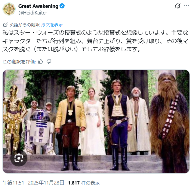 Qが「これは映画だ」と言った時…そして、悪人よりも善人の方が多いとも… そしてトランプ大統領は何度も、多くの人々を「セントラル・キャスティング」と呼びました… 彼らは本当に素晴らしい俳優、女優です! 考えてみてください。もし高波動の人が悪役を演じているとしたら… 彼らに向けられる憎しみを聞くのに、彼らの魂がどれほど強くなければならないのか…心の中では自分が「善人」だと知っているのに。 そして、そのような立場にいる皆さんに、心から感謝します。 人類への貢献に心から感謝します。 幕が上がり、エンドロールが流れる時、最後には誰が誰だったのか、誰もが分かるようになることを、心の底から願っています。
