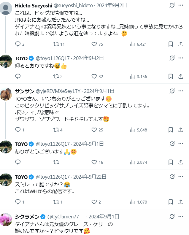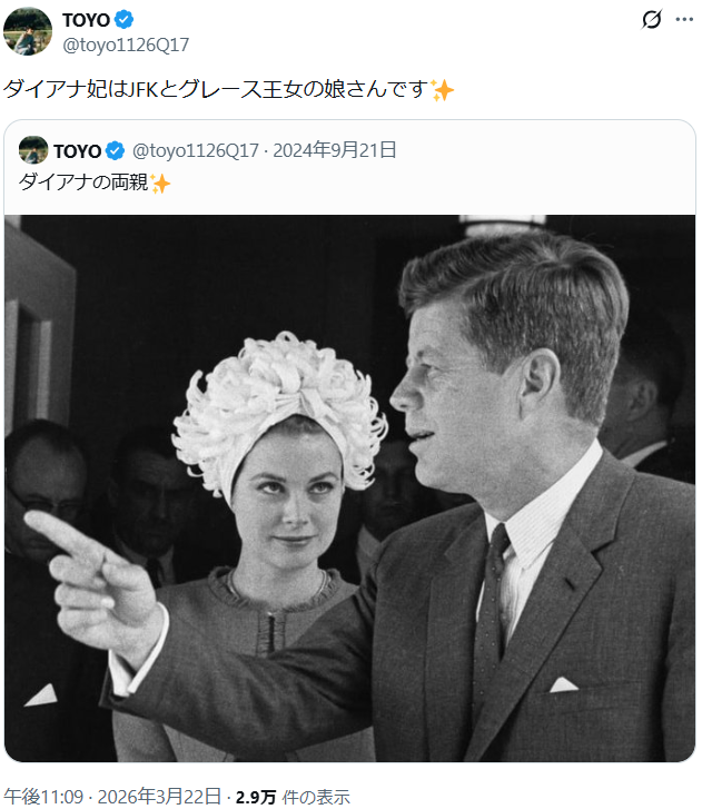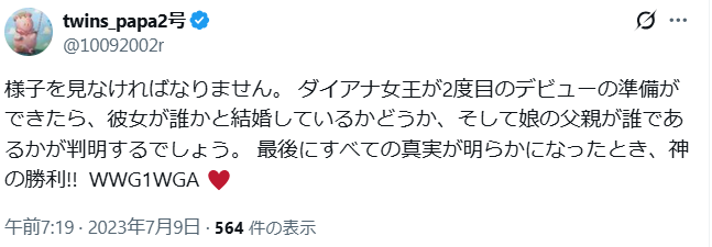 X(旧Twitter)でも、2024年頃から特にこの手の投稿が散見されていて、「Q戦士ダイアナ妃」みたいなハッシュタグや絵文字付きで拡散されたり、「ダイアナは若い時からQのメンバー」「トランプとQに救われた」などと語られる。