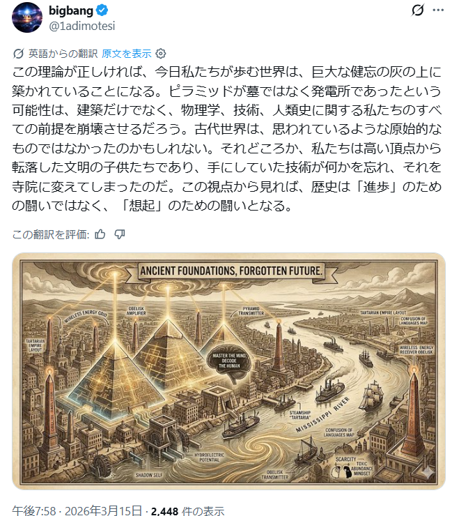 歴史書が認めるよりもはるかに進んだ文明の技術でした。 もしかしたら、本当の疑問は、なぜピラミッドがどこにでもあるのか、ではないのかもしれません。 本当の疑問は… それらを建てた文明の歴史を、誰が消したのか?