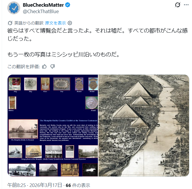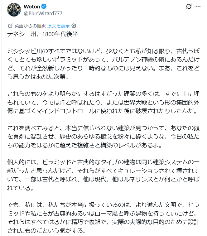 これがAIでないことを願います。そして字幕を付けたいのですが時間がない。ミシシッピ州にエジプトがあり、ピラミッドがあるという情報がありましたね。今から探してみます。