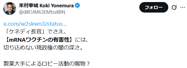 これはMAHA運動を支持してトランプ大統領に一票を投じた有権者への、明らかな裏切りではないでしょうか。