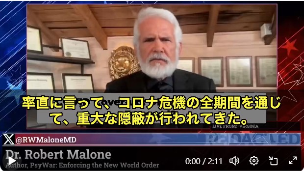 ロバート・マローン博士が、衝撃的な内部告発をしました。